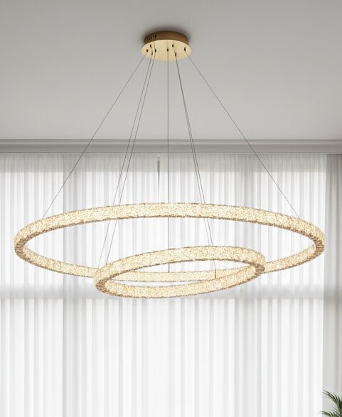 Concentric Ring Shape: Multiple rings of crystal and stainless steel for a dramatic, sculptural effect.