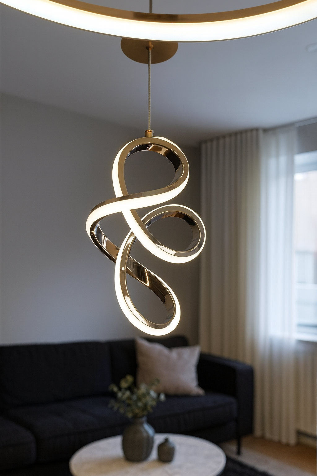 Elevate your living space with the futuristic and artistic look of the Modern Luxury Loop LED Pendant Light, a masterpiece crafted for those who appreciate the fusion of art, luxury, and innovation. Designed to align with modern architectural trends, this pendant represents the true essence of luxury lights, cutting-edge designer lighting, and high-end home décor. The sculptural loop design adds a dynamic visual flow, making it an iconic lighting statement for any premium home.